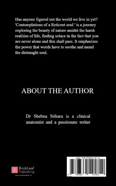 Has anyone figured out the world we live in yet? 'Contemplations of a Reticent soul is a journey exploring the beauty of nature amidst the harsh realities of life, finding solace in the fact that you are never alone and this shall pass. It emphasizes the power that words have to soothe and mend the distraught soul.