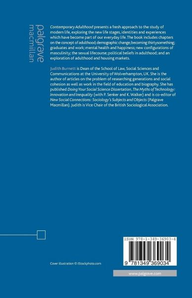 Introduction: The Problem of Contemporary Adulthood: Calendars, Cartographies, and Constructions; J. Burnett Generations, Modernity and the Problem of Contemporary Adulthood; H.Blatterer The Calendar of Life: The Context of Social Trends for Understanding Contemporary Adulthood; J.Burnett Buying in: On Adulthood and Home Ownership Ideologies; K.Crawford Young Graduates and Understandings of Adulthood; R.Brooks Thirtysomething and Contemporary Adulthood; J.Burnett Chronologising Adulthood/Configuring Masculinity; J.Hockey, V.Robinson & A.Hall Surveys, Citizenship and the Sexual Lifecourse; M.Davis Life Begins At...? Psychological Reflections on Mental Health and Adulthood; J.Brown Growing Up Through Activism: Adult Identities and the Maturing of Standpoints; R.McKechnie & B.Körner Bibliography