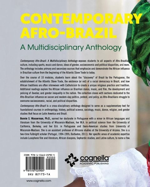 Contemporary Afro-Brazil: A Multidisciplinary Anthology exposes students to all aspects of Afro-Brazilian culture, including sports, music and dance, ideas of gender, socioeconomic and political disparities, and more. The anthology includes primary and secondary sources that emphasize and demonstrate the African influence in Brazilian culture from the beginning of the Atlantic Slave Trade to today. Over the course of 10 modules, students learn about the "discovery" of Brazil by the Portuguese, the establishment of the Atlantic Slave Trade, the existence (or not) of a racial democracy in Brazil, and how African traditions are often interwoven with Catholicism to create a unique religious practice and tradition. Additional readings explore the African influence on Brazilian dance, music, and film, the development and policing of favelas, and gender inequality in the nation. The collection closes with sections dedicated to the Afro-Brazilian influence on soccer and modern-day politics, protest, and policy, as Afro-Brazilians struggle to overcome socioeconomic, racial, and political disparities. Contemporary Afro-Brazil is a cross-disciplinary anthology designed to serve as a supplementary text for foundational courses in anthropology, history, political science, sociology, music, dance, religion, and gender studies that focus on Latin America and Brazil. Bonnie S. Wasserman, Ph.D., earned her doctorate in Portuguese with a minor in African languages and literature from the University of Wisconsin-Madison, her M.A. in political science from the University of California, Berkeley, and her B.A. in Portuguese and Ibero-American studies from University of Wisconsin-Madison. She is an assistant professor of Africana studies at the University of Arizona. She is a two-time Fulbright scholar (Portugal, 1994-1995; Barbados, 2011). Her specific areas of academic expertise include Lusophone film and literature, African diaspora, Sephardic studies, and Latinx culture, to name a few.