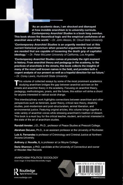 'As an academic dean, I am shocked and dismayed at how invisible anarchism is to university curricula. Contemporary Anarchist Studies is a book long overdue. This book shows the theoretical logic and the empirical usefulness of an anarchist view of the world.' - Dr. John Alessio, St. Cloud State University