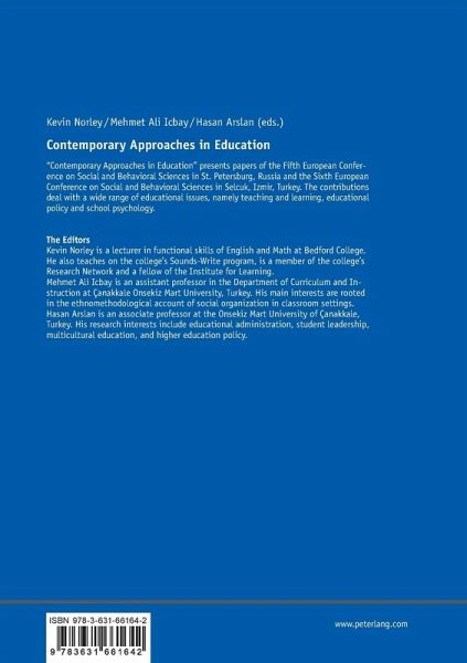 Contemporary Approaches in Education presents papers of the Fifth European Conference on Social and Behavioral Sciences in St. Petersburg, Russia and the Sixth European Conference on Social and Behavioral Sciences in Selcuk, Izmir, Turkey. The contributions deal with a wide range of educational issues, namely teaching and learning, educational policy and school psychology.