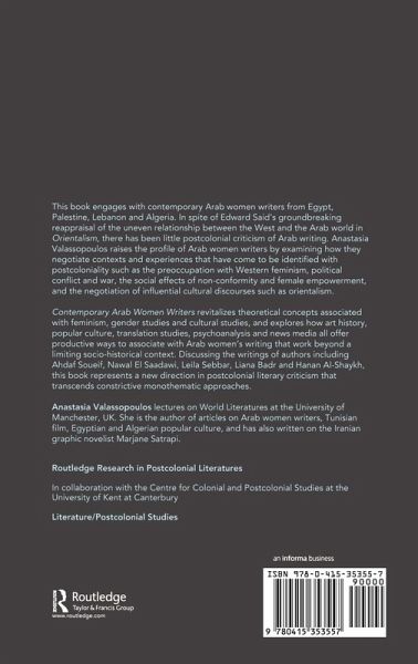 This book engages with contemporary Arab women writers from Egypt, Palestine, Lebanon and Algeria. In spite of Edward Said's groundbreaking reappraisal of the uneven relationship between the West and the Arab world in Orientalism, there has been little postcolonial criticism of Arab writing. Anastasia Valassopoulos raises the profile of Arab women writers by examining how they negotiate contexts and experiences that have come to be identified with postcoloniality such as the preoccupation with Western feminism, political conflict and war, the social effects of non-conformity and female empowerment, and the negotiation of influential cultural discourses such as orientalism. Contemporary Arab Women Writers revitalizes theoretical concepts associated with feminism, gender studies and cultural studies, and explores how art history, popular culture, translation studies, psychoanalysis and news media all offer productive ways to associate with Arab women's writing that work beyond a limiting socio-historical context. Discussing the writings of authors including Ahdaf Soueif, Nawal El Saadawi, Leila Sebbar, Liana Badr and Hanan Al-Shaykh, this book represents a new direction in postcolonial literary criticism that transcends constrictive monothematic approaches.