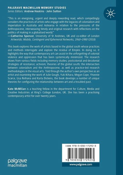 This book explores the work of artists based in the global south whose practices and methods interrogate and explore the residue of Empire. In doing so, it highlights the way that contemporary art can assist in the un-forgetting of colonial violence and oppression that has been systemically minimized. The research draws from various fields including memory studies; postcolonial and decolonial strategies of resistance; activism; theories of the global south; the intersection between colonialism and the Anthropocene, as well as practice-led research methodologies in the visual arts. Told through the author's own perspective as an artist and examining the work of Julie Gough, Yuki Kihara, Megan Cope, Yhonnie Scarce, Lisa Reihana and Karla Dickens, the book develops a number of unique theories for configuring the relationship between art and a troubled past.