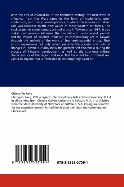 With the end of colonialism in the twentieth century, the next wave of influence from the West came in the form of modernism, post-modernism, and finally contemporary art, where the now industrialized East was receptive to the new values of these Western art forms. This book examines contemporary art and artists in Taiwan after 1987. It also makes comparisons between the colonial and post-colonial periods and the impact of colonial influence on contemporary art in Taiwan, through the analysis of the work of four quintessential artists. Their artistic expressions not only reflect perfectly the societal and political changes in Taiwan, but also show the greatest self-awareness during the process of Taiwan s development as well as the strongest cultural characteristics of the region and race. This book will be of interest and useful to anyone that is interested in contemporary Asian art.