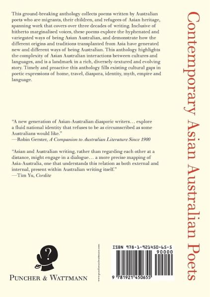 This ground-breaking anthology collects poems written by Australian poets who are migrants, their children, and refugees of Asian heritage, spanning work that covers over three decades of writing. Inclusive of hitherto marginalised voices, these poems explore the hyphenated and variegated ways of being Asian Australian, and demonstrate how the different origins and traditions transplanted from Asia have generated new and different ways of being Australian. This anthology highlights the complexity of Asian Australian interactions between cultures and languages, and is a landmark in a rich, diversely-textured and evolving story. Timely and proactive this anthology fills existing cultural gaps in poetic expressions of home, travel, diaspora, identity, myth, empire and language.