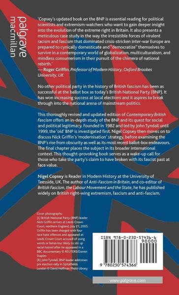 'Copsey's updated book on the BNP is essential reading for political scientists and extremism-watchers who want to gain deeper insight into the evolution of the extreme right in Britain. It also presents a meticulous case study in the way the irresistible forces of virulent racism and fascism that dominated crisis-stricken inter-war Europe are prepared to cynically domesticate and 'democratize' themselves to survive in a contemporary world of globalization, multiculturalism, and mindless consumerism in their pursuit of the chimera of national rebirth.' - Roger Griffin, Professor of Modern History, Oxford Brookes University, UK
