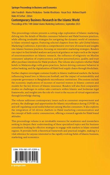 This proceedings volume presents a cutting-edge exploration of Islamic marketing, delving into the details of Muslim consumer behavior and Halal business practices, while offering invaluable strategies for navigating the dynamic world of commerce in Islam-oriented regions. Featuring selected chapters from the 14th Global Islamic Marketing Conference, it provides a comprehensive overview of research and insights into Islamic business practices, focusing on innovative marketing strategies. Readers can expect to find detailed analyses and practical guidance on topics such as the impact of neurotransmitters on Islamic research, the influence of religiosity on Muslim consumers' adoption of cryptocurrency, and how perceived price, quality, and trust affect purchase intentions for Halal products. The volume also explores whether Halal hotels in Malaysia align with green practices, factors driving customer behavior in online banking, and the digitalization of Halal food supply chainsthrough blockchain.