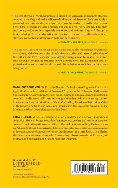 Marguerite Ohrtman, Ed.D., is the director of school counseling and clinical training in the Counseling and Student Personnel Program at the University of Minnesota. She is a former classroom teacher and school counselor and is a licensed professional counselor in Minnesota. Ohrtman teaches graduate-level school counseling trainees in courses such as Introduction to School Counseling, Practicum/Internship, Crisis in the School, and Child and Adolescent Counseling. In addition, she is the current President of Minnesota School Counseling Association Board. Erika Heltner, M.Ed., is a practicing school counselor and a licensed professional counselor. She is a former secondary language arts teacher and currently works as a school counselor and intervention coordinator in the middle school setting. She is also an ACE (Adverse Childhood Experiences) Interface Presenter and works with communities to increase awareness of how experience impacts long-term health. In addition, she has experience supervising school counseling interns through the University of Minnesota's Counseling and Student Personnel Program.