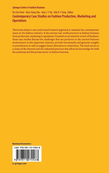 This book adopts a case study based research approach to examine the contemporary issues in the fashion industry. It documents real-world practices in fashion business from production, marketing to operations. Founded on an extensive review of literature, these case studies discuss the challenges that are pertinent to the current business environment in this important industry, provide benchmarks and generate insights to practitioners as well as suggest future directions to researchers. The book serves as a nexus of the theories and the industrial practices that advances knowledge for both the academia and the private sector in fashion business.
