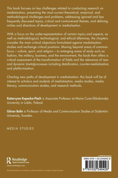 Charting new paths of development in mediatisation, this book will be of interest to scholars and students of mediatisation, media studies, media literacy, communication studies, and research methods.