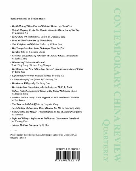 This is the second issue of Contemporary China Review (Quarterly Journal) published by Bouden House in New York. We are very excited to include in this issue many in-depth commentaries by various scholars and experts on current affairs in China and America.