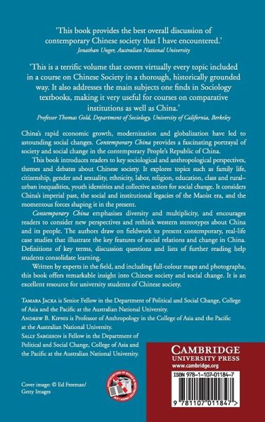 China's rapid economic growth, modernization and globalization have led to astounding social changes. Contemporary China provides a fascinating portrayal of society and social change in the contemporary People's Republic of China. This book introduces readers to key sociological perspectives, themes and debates about Chinese society. It explores topics such as family life, citizenship, gender, ethnicity, labour, religion, education, class and rural/urban inequalities. It considers China's imperial past, the social and institutional legacies of the Maoist era, and the momentous forces shaping it in the present. It also emphasises diversity and multiplicity, encouraging readers to consider new perspectives and rethink Western stereotypes about China and its people. Real-life case studies illustrate the key features of social relations and change in China. Definitions of key terms, discussion questions and lists of further reading help consolidate learning. Including full-colour maps and photographs, this book offers remarkable insight into Chinese society and social change.