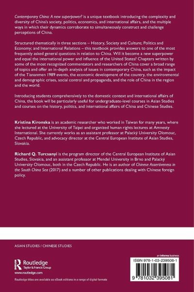 Contemporary China: A New Superpower? is a unique textbook introducing the complexity and diversity of China's society, politics, economics, and international affairs, and the multiple ways in which their dynamics corroborate to simultaneously construct and challenge perceptions of China.