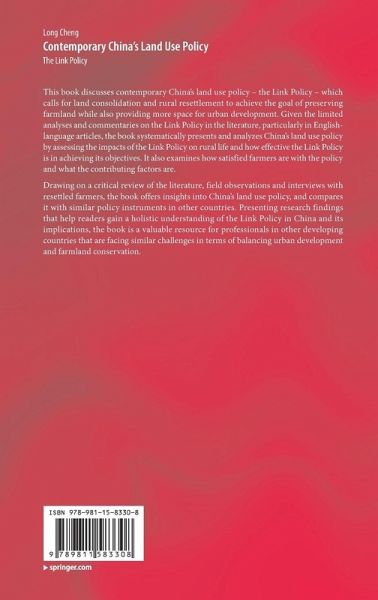 Drawing on a critical review of the literature, field observations and interviews with resettled farmers, the book offers insights into China's land use policy, and compares it with similar policy instruments in other countries. Presenting research findings that help readers gain a holistic understanding of the Link Policy in China and its implications, the book is a valuable resource for professionals in other developing countries that are facing similar challenges in terms of balancing urban development and farmland conservation.
