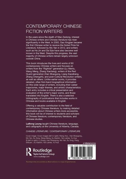 In the years since the death of Mao Zedong, interest in Chinese writers and Chinese literature has risen significantly in the West. In 2000, Gao Xingjian became the first Chinese writer to receive the Nobel Prize for Literature followed by Mo Yan in 2012, and writers such as Ha Jin and Da Sijie have also become well known in the West. Despite this progress, the vast majority of Chinese writers remain largely unknown outside of China. This book introduces the lives and works of eighty contemporary Chinese writers, and focuses on writers from the "Rightist" generation (Bai Hua, Gao Xiaosheng, Liu Shaotang), writers of the Red Guard generation (Li Rui, Wang Anyi), Post-Cultural Revolution Writers, as well as others. Unlike earlier works, it provides detailed, often first-hand, biographical information on this wide range of writers, including their career trajectories, major themes and artistic characteristics. In addition to this, each entry includes a critical presentation and evaluation of the writer's major works, a selected bibliography of publications that includes works in Chinese, works translated into English, and critical articles and books available in English. Offering a valuable contribution to the field of contemporary Chinese literature by making detailed information about Chinese writers more accessible, this book will be of interest to students and scholars Chinese Literature, Contemporary Literature and Chinese Studies.