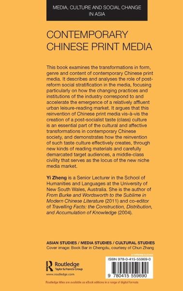 This book examines the transformations in form, genre, and content of contemporary Chinese print media. It describes and analyses the role of post-reform social stratification in the media, focusing particularly on how the changing practices and institutions of the industry correspond to and accelerate the emergence of a relatively affluent urban leisure-reading market. It argues that this reinvention of Chinese print media vis-à-vis the creation of a post-socialist taste (class) culture is an essential part of the cultural and affective transformations in contemporary Chinese society, and demonstrates how the reinvention of such taste culture effectively creates, through new kinds of reading materials and carefully demarcated target audiences, a middle-class civility that serves as the locus of the new niche media market.