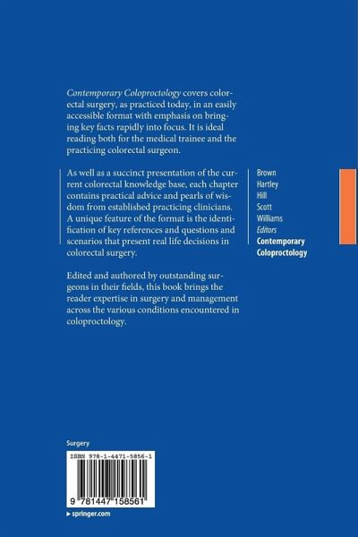 Contemporary Coloproctology covers colorectal surgery, as practiced today, in an easily accessible format with emphasis on bringing key facts rapidly into focus. It is ideal reading both for the medical trainee and the practicing colorectal surgeon.