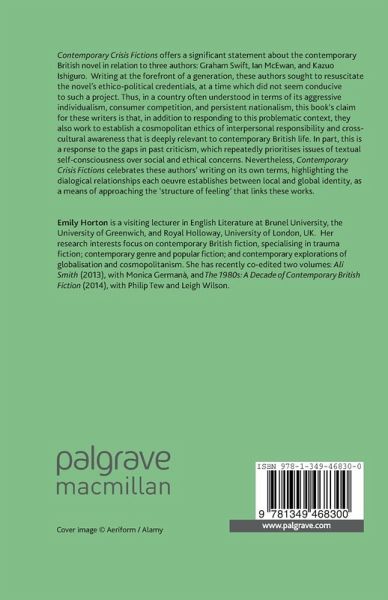 Introduction: Contemporary Crisis Fiction: A New Approach to the Writing of Graham Swift, Ian McEwan, and Kazuo Ishiguro 1. Contemporary Crisis Fiction: Constructing a New Genre 2. Curiosity and Civilisation: Reassessments of History in the Fiction of Graham Swift. 3. Reassessing the Two-Culture Debate: Popular Science in the Fiction of Ian McEwan 4. Shifting Perspectives and Alternate Landscapes: Culture and Cultural Politics in the Fiction of Kazuo Ishiguro Epilogue: A Review of Contemporary Crisis Fiction with an Emphasis on Overlap Between the Works at a Discursive Level Bibliography Index
