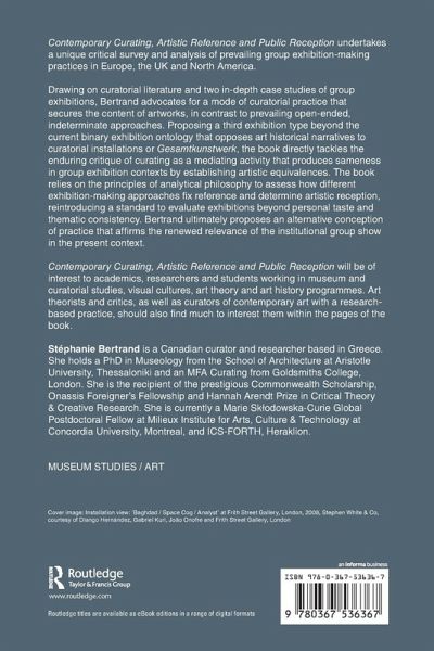 Drawing on curatorial literature and two in-depth case studies of group exhibitions, Bertrand advocates for a mode of curatorial practice that secures the content of artworks, in contrast to prevailing open-ended, indeterminate approaches. Proposing a third exhibition type beyond the current binary exhibition ontology that opposes art historical narratives to curatorial installations or Gesamtkunstwerk, the book directly tackles the enduring critique of curating as a mediating activity that produces sameness in group-exhibition contexts by establishing artistic equivalences. The book relies on the principles of analytical philosophy to assess how different exhibition-making approaches fix reference and determine artistic reception, reintroducing a standard to evaluate exhibitions beyond personal taste and thematic coherence. Bertrand ultimately proposes an alternative conception of practice that affirms the renewed relevance of the institutional group show in the present context.