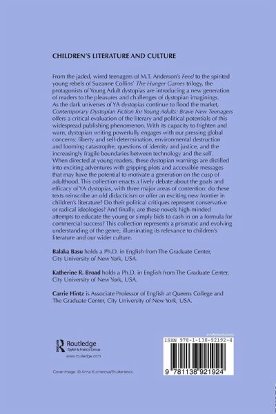 From the jaded, wired teenagers of M.T. Anderson's Feed to the spirited young rebels of Suzanne Collins' The Hunger Games trilogy, the protagonists of Young Adult dystopias are introducing a new generation of readers to the pleasures and challenges of dystopian imaginings. As the dark universes of YA dystopias continue to flood the market,Contemporary Dystopian Fiction for Young Adults: Brave New Teenagers offers a critical evaluation of the literary and political potentials of this widespread publishing phenomenon. With its capacity to frighten and warn, dystopian writing powerfully engages with our pressing global concerns: liberty and self-determination, environmental destruction and looming catastrophe, questions of identity and justice, and the increasingly fragile boundaries between technology and the self. When directed at young readers, these dystopian warnings are distilled into exciting adventures with gripping plots and accessible messages that may have the potential to motivate a generation on the cusp of adulthood. This collection enacts a lively debate about the goals and efficacy of YA dystopias, with three major areas of contention: do these texts reinscribe an old didacticism or offer an exciting new frontier in children's literature? Do their political critiques represent conservative or radical ideologies? And finally, are these novels high-minded attempts to educate the young or simply bids to cash in on a formula for commercial success? This collection represents a prismatic and evolving understanding of the genre, illuminating its relevance to children's literature and our wider culture.
