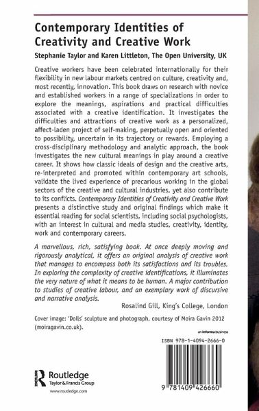 Employing a cross-disciplinary methodology and analytic approach, the book investigates the new cultural meanings in play around a creative career. It shows how classic ideals of design and the creative arts, re-interpreted and promoted within contemporary art schools, validate the lived experience of precarious working in the global sectors of the creative and cultural industries, yet also contribute to its conflicts. 'Contemporary Identities of Creativity and Creative Work' presents a distinctive study and original findings which make it essential reading for social scientists, including social psychologists, with an interest in cultural and media studies, creativity, identity, work and contemporary careers.