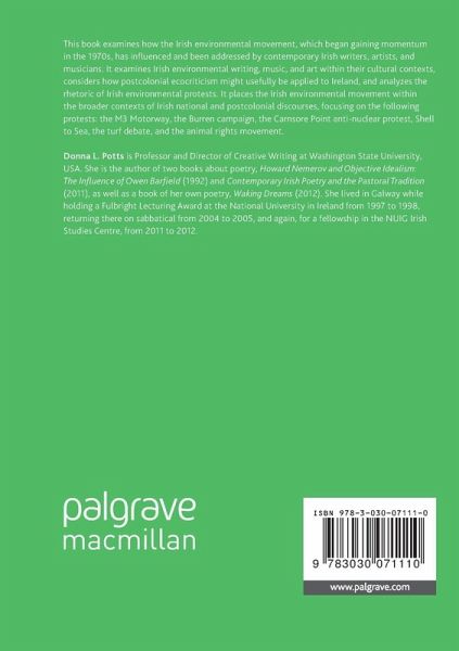 This book examines how the Irish environmental movement, which began gaining momentum in the 1970s, has influenced and been addressed by contemporary Irish writers, artists, and musicians. It examines Irish environmental writing, music, and art within their cultural contexts, considers how postcolonial ecocriticism might usefully be applied to Ireland, and analyzes the rhetoric of Irish environmental protests. It places the Irish environmental movement within the broader contexts of Irish national and postcolonial discourses, focusing on the following protests: the M3 Motorway, the Burren campaign, the Carnsore Point anti-nuclear protest, Shell to Sea, the turf debate, and the animal rights movement.