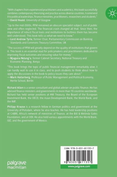 Richard Allen is a senior consultant and global adviser on public finance. He has advised finance ministers and governments in more than 70 countries worldwide. Richard has held senior positions at HM Treasury, the Board of the European Investment Bank, the OECD, the Asian Development Bank, the World Bank, and the IMF. Philipp Krause is a research fellow in German politics and government at the University of Potsdam, where he also teaches. He has held leadership positions at CABRI, Africa's network of ministries of finance, at the Bill & Melinda Gates Foundation, and at ODI. He also held various appointments with the World Bank, GIZ, and the government of Mexico. Philipp holds a PhD from the London School of Economics and Political Science.