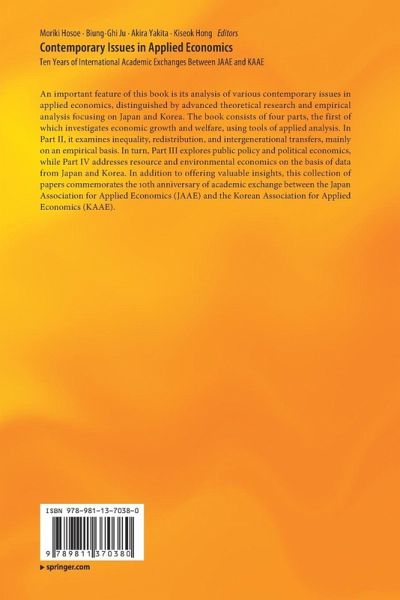 An important feature of this book is its analysis of various contemporary issues in applied economics, distinguished by advanced theoretical research and empirical analysis focusing on Japan and Korea. The book consists of four parts, the first of which investigates economic growth and welfare, using tools of applied analysis. In Part II, it examines inequality, redistribution, and intergenerational transfers, mainly on an empirical basis. In turn, Part III explores public policy and political economics, while Part IV addresses resource and environmental economics on the basis of data from Japan and Korea. In addition to offering valuable insights, this collection of papers commemorates the 10th anniversary of academic exchange between the Japan Association for Applied Economics (JAAE) and the Korean Association for Applied Economics (KAAE).
