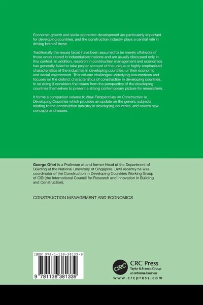 This volume challenges underlying assumptions and focuses on the distinct characteristics of construction in developing countries. In so doing it considers the issues from the perspective of developing countries to present a strong contemporary picture for researchers.
