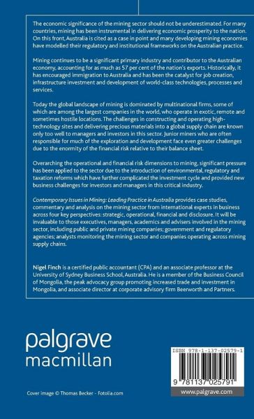 Provides case studies, commentary and analysis on the mining sector from international experts in business, across the four key focus areas of strategic, operational, financial and disclosure perspectives on mining. Invaluable to executives, managers and advisers involved in the mining sector, including public and private mining companies.