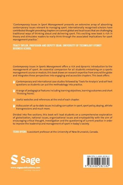 Contemporary Issues in Sport Management: A Critical Introduction presents an extensive selection array of absorbing contemporary issues relevant to managing sport. Internationally recognised scholars have contributed thought provoking chapters on current global and local issues that are challenging traditional ways of thinking about and delivering sport.