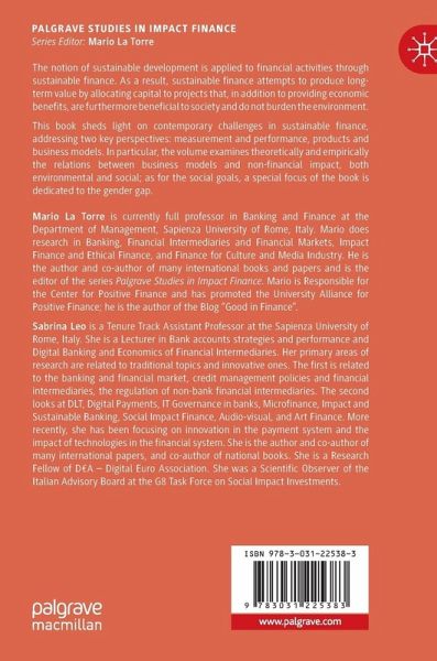 This book sheds light on contemporary challenges in sustainable finance, addressing two key perspectives: measurement and performance, and products and business models. In particular, the volume examines theoretically and empirically the relations between business models and non-financial impact, both environmental and social; as for the social goals, a special focus of the book is dedicated to the gender gap.