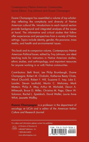 While Native American communities remain culturally innovative and continue to struggle for survival, researchers, teachers, and students lack texts that both represent the breadth of contemporary experiences and look toward the future. Editor Duane Champagne has assembled a volume of top scholarship reflecting the complexity and diversity of Native American cultural life. Section introductions provide background and analyses of the issues. Informative and critical studies offer experiences and perspectives from a variety of Native settings. This book and its companion volume, Contemporary Native American Political Issues, edited by Troy R. Johnson, are ideal teaching tools and resources for anyone working in or with Native communities.