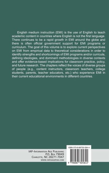 English Medium Instruction (EMI) is the use of English to teach academic content in countries where English is not the first language. There continues to be a rapid growth in EMI around the globe and there is often official government support for EMI programs or curriculum. The goal of this volume is to explore current perspectives on EMI from empirical data to theoretical considerations in order to identify strengths and shortcomings of EMI programs and/or curricula, defining ideologies, and dominant methodologies in diverse contexts and offer evidence-based implications for classroom practice, policy, and future research. The chapters reflect the voices of diverse groups of people (e.g., content instructors, classroom teachers, college students, parents, teacher educators, etc.) who experience EMI in their current educational environments in different countries.