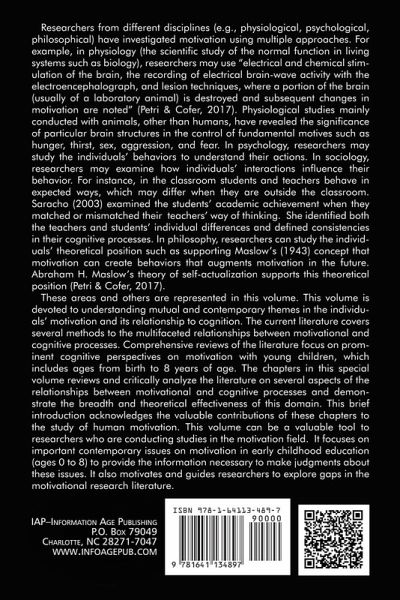 Researchers from different disciplines (e.g., physiological, psychological, philosophical) have investigated motivation using multiple approaches. For example, in physiology (the scientific study of the normal function in living systems such as biology), researchers may use "electrical and chemical stimulation of the brain, the recording of electrical brain-wave activity with the electroencephalograph, and lesion techniques, where a portion of the brain (usually of a laboratory animal) is destroyed and subsequent changes in motivation are noted" (Petri & Cofer, 2017). Physiological studies mainly conducted with animals, other than humans, have revealed the significance of particular brain structures in the control of fundamental motives such as hunger, thirst, sex, aggression, and fear. In psychology, researchers may study the individuals' behaviors to understand their actions. In sociology, researchers may examine how individuals' interactions influence their behavior. For instance, in the classroom students and teachers behave in expected ways, which may differ when they are outside the classroom. Saracho (2003) examined the students' academic achievement when they matched or mismatched their teachers' way of thinking. She identified both the teachers and students individual differences and defined consistencies in their cognitive processes. In philosophy, researchers can study the individuals' theoretical position such as supporting Maslow's (1943) concept that motivation can create behaviors that augments motivation in the future. Abraham H. Maslow's theory of self-actualization supports this theoretical position (Petri & Cofer, 2017). These areas and others are represented in this volume. This volume is devoted to understanding mutual and contemporary themes in the individuals' motivation and its relationship to cognition. The current literature covers several methods to the multifaceted relationships between motivational and cognitive processes. Comprehensive reviews of the literature focus on prominent cognitive perspectives on motivation with young children, which includes ages from birth to eight years of age. The chapters in this special volume review and critically analyze the literature on several aspects of the relationships between motivational and cognitive processes and demonstrates the breadth and theoretical effectiveness of this domain. This brief introduction acknowledges the valuable contributions of these chapters to the study of human motivation. This volume can be a valuable tool to researchers who are conducting studies in the motivation field. It focuses on important contemporary issues on motivation in early childhood education (ages 0 to 8) to provide the information necessary to make judgments about these issues. It also motivates and guides researchers to explore gaps in the motivation literature.
