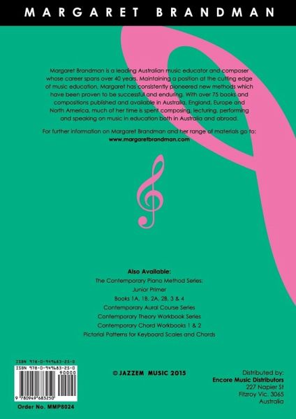 Margaret Brandman's 'Contemporary Piano Method' is designed to equip the student with the necessary skills to play both Classical and Modern music with ease and understanding. The methodology incorporates a variety of progressive learning modalities, including the interval approach and multi-key learning. In this level of the series (Level 2A) students will gain experience in all major and minor scales and keys, plus develop an understanding of the harmonic structure of music, all the while applying these skills to a tuneful set of graded pieces in varying styles.