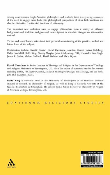 Among contemporary Anglo-American philosophers and students there is a growing awareness of the need to engage more both with philosophical perspectives of other faith traditions and also the distinctive 'continental' tradition of philosophy. This important new collection aims to engage philosophers from a variety of different backgrounds and traditions (religious and non-religious) to stimulate dialogue on philosophical method. The volume aims to ask an emerging generation of philosophers - who specialize in philosophy of religion - to write about their personal understanding of the practice, method and future focus of the subject, with the ultimate goal of illustrating why this expanding subject area is important.
