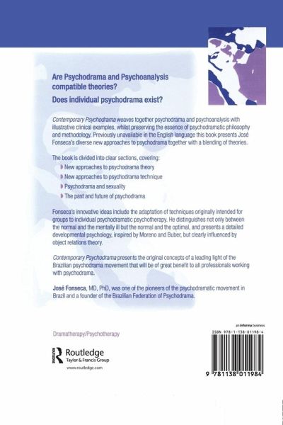 Contemporary Psychodrama weaves together psychodrama and psychoanalysis with illustrative clinical examples, whilst preserving the essence of psychodramatic philosophy and methodology. Previously unavailable in the English language, this book presents José Fonseca's diverse new approaches to psychodrama together with a blending of theories. The book is divided into clear sections, covering: * new approaches to psychodrama theory * new approaches to psychodrama technique * psychodrama and sexuality * the past and future of psychodrama. Fonseca's innovative ideas include the adaptation of techniques originally intended for groups to individual psychodramatic psychotherapy. He distinguishes between not only the normal and the mentally ill but the normal and the optimal, and presents a detailed developmental psychology, inspired by Moreno and Buber, but clearly influenced by object relations theory. Contemporary Psychodrama presents the original concepts of a leading light of the Brazilian psychodrama movement that will be of great benefit to all professionals working with psychodrama. José Fonseca, M.D., Ph.D., was one of the pioneers of the psychodramatic movement in Brazil and a founder of the Brazilian federation of psychodrama. He has published two books in Brazil, Psychodrama of Madness and Relationship Psychotherapy.