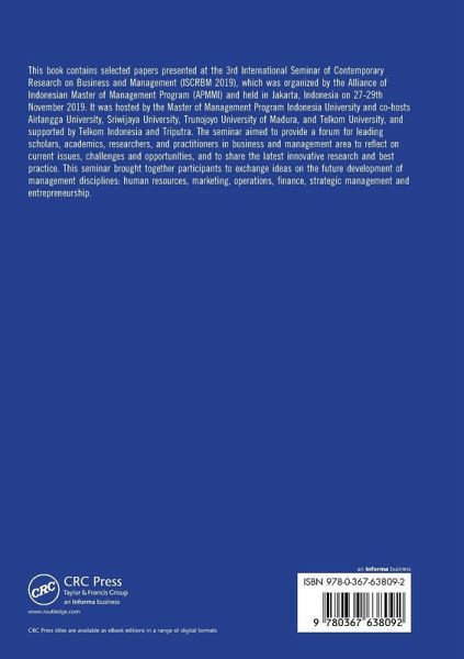 This book contains selected papers presented at the 3rd International Seminar of Contemporary Research on Business and Management (ISCRBM 2019), which was organized by the Alliance of Indonesian Master of Management Program (APMMI) and held in Jakarta, Indonesia on 27-29th November 2019. It was hosted by the Master of Management Program Indonesia University and co-hosts Airlangga University, Sriwijaya University, Trunojoyo University of Madura, and Telkom University, and supported by Telkom Indonesia and Triputra. The seminar aimed to provide a forum for leading scholars, academics, researchers, and practitioners in business and management area to reflect on current issues, challenges and opportunities, and to share the latest innovative research and best practice. This seminar brought together participants to exchange ideas on the future development of management disciplines: human resources, marketing, operations, finance, strategic management and entrepreneurship.
