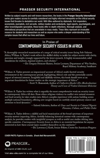 This compelling book serves as a comprehensive resource for readers interested in contemporary security issues in Africa. It details the impact of complex challenges in Africa and explains why addressing them grows increasingly important. Presenting both general overviews and specific case studies, this book provides an excellent introduction to contemporary security issues in Africa, home to more than thirty of the fifty most fragile nations in the world. It covers the last three decades of conflict on the continent, focusing on such topics as weak and failing states, ethnic conflict and civil wars, natural resources and environmental security, political violence and terrorism, piracy and maritime security, food security and poverty, international responses, and future prospects. The core of the book comprises detailed analysis of the nexus between culture, politics, and security in Africa, while the volume as a whole examines key regional and transnational security issues affecting Africa and their implications at the state, regional, and international levels. The book explores the dynamic role that African nations play in influencing international security and also investigates and articulates factors heightening the importance of Africa's role in international affairs.
