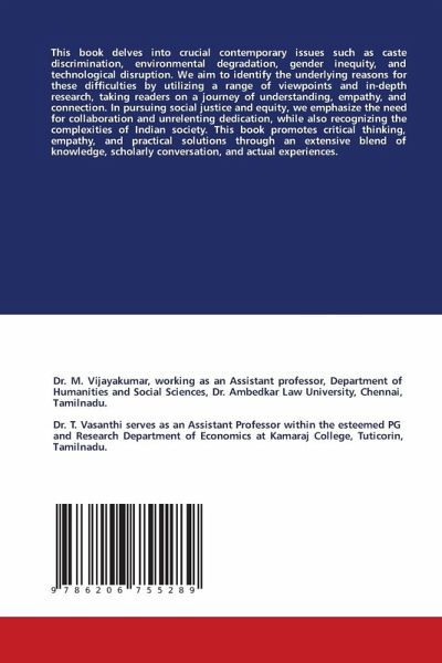 This book delves into crucial contemporary issues such as caste discrimination, environmental degradation, gender inequity, and technological disruption. We aim to identify the underlying reasons for these difficulties by utilizing a range of viewpoints and in-depth research, taking readers on a journey of understanding, empathy, and connection. In pursuing social justice and equity, we emphasize the need for collaboration and unrelenting dedication, while also recognizing the complexities of Indian society. This book promotes critical thinking, empathy, and practical solutions through an extensive blend of knowledge, scholarly conversation, and actual experiences.