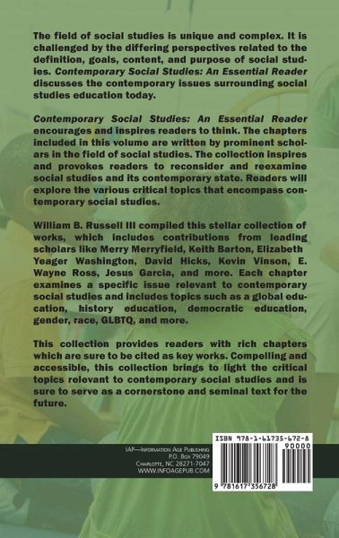 A volume in Teaching and Learning Social Studies Book Series Series Editor William Benedict Russell III, University of Central Florida The field of social studies is unique and complex. It is challenged by the differing perspectives related to the definition, goals, content, and purpose of social studies. Contemporary Social Studies: An Essential Reader discusses the contemporary issues surrounding social studies education today. Contemporary Social Studies: An Essential Reader encourages and inspires readers to think. The chapters included in this volume are written by prominent scholars in the field of social studies. The collection inspires and provokes readers to reconsider and reexamine social studies and its contemporary state. Readers will explore the various critical topics that encompass contemporary social studies. This collection provides readers with rich chapters which are sure to be cited as key works. Compelling and accessible, this collection brings to light the critical topics relevant to contemporary social studies and is sure to serve as a cornerstone and seminal text for the future.