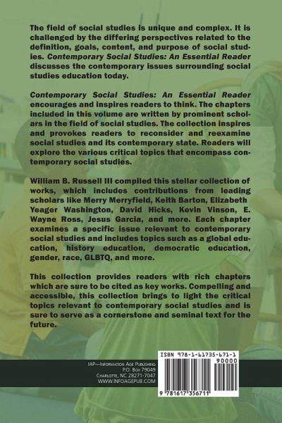 A volume in Teaching and Learning Social Studies Book Series Series Editor William Benedict Russell III, University of Central Florida The field of social studies is unique and complex. It is challenged by the differing perspectives related to the definition, goals, content, and purpose of social studies. Contemporary Social Studies: An Essential Reader discusses the contemporary issues surrounding social studies education today. Contemporary Social Studies: An Essential Reader encourages and inspires readers to think. The chapters included in this volume are written by prominent scholars in the field of social studies. The collection inspires and provokes readers to reconsider and reexamine social studies and its contemporary state. Readers will explore the various critical topics that encompass contemporary social studies. This collection provides readers with rich chapters which are sure to be cited as key works. Compelling and accessible, this collection brings to light the critical topics relevant to contemporary social studies and is sure to serve as a cornerstone and seminal text for the future.