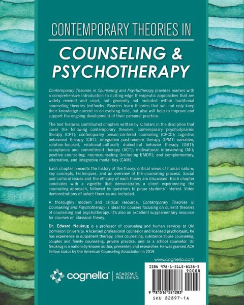 Contemporary Theories in Counseling and Psychotherapy provides readers with a comprehensive introduction to cutting-edge therapeutic approaches that are widely revered and used, but generally not included within traditional counseling theories textbooks. Readers learn theories that will not only keep their knowledge current in an evolving field, but also will help to improve and support the ongoing development of their personal practice. The text features contributed chapters written by scholars in the discipline that cover the following contemporary theories: contemporary psychodynamic therapy (CPT); contemporary person-centered counseling (CPCC); cognitive behavioral therapy (CBT); integrative post-modern therapy (IPMT: narrative, solution-focused, relational-cultural); dialectical behavior therapy (DBT); acceptance and commitment therapy (ACT); motivational interviewing (MI); positive counseling; neurocounseling (including EMDR); and complementary, alternative, and integrative modalities (CAM). Each chapter presents the history of the theory, critical views of human nature, key concepts, techniques, and an overview of the counseling process. Social and cultural issues and the efficacy of each theory are discussed. Each chapter concludes with a vignette that demonstrates a client experiencing the counseling approach, followed by questions to pique students' interest. Video demonstrations of select theories are included. A thoroughly modern and critical resource, Contemporary Theories in Counseling and Psychotherapy is ideal for courses focusing on current theories of counseling and psychotherapy. It's also an excellent supplementary resource for courses on classical theory. Dr. Edward Neukrug is a professor of counseling and human services at Old Dominion University. A licensed professional counselor and licensed psychologist, he has experience in outpatient therapy, crisis counseling, substance abuse counseling, couples and family counseling, private practice, and as a school counselor. Dr. Neukrug is a nationally known author, presenter, and researcher. He was granted ACA Fellow status by the American Counseling Association in 2019. Dr. Neukrug is the author of eleven books: The Dictionary of Counseling and Human Services; Skills and Techniques for Human Service Professionals; Counseling Theory and Practice (2nd ed.); The World of the Counselor (5th ed.); Experiencing the World of the Counselor: A Workbook for Counselor Educators and Students (4th ed.); Theory, Practice and Trends in Human Services: An Introduction to An Emerging Profession (6th ed.); Essentials of Testing and Assessment for Counselors, Social Workers, and Psychologists (3rd ed.); A Brief Orientation to Counseling: Professional Identity, History, and Standards (2nd ed.); Skills and Tools for Today's Counselors and Psychotherapists; Counseling and Helping Skills: Critical Techniques for Becoming a Counselor ; and Sage Encyclopedia of Theory in Counseling and Psychotherapy (editor).