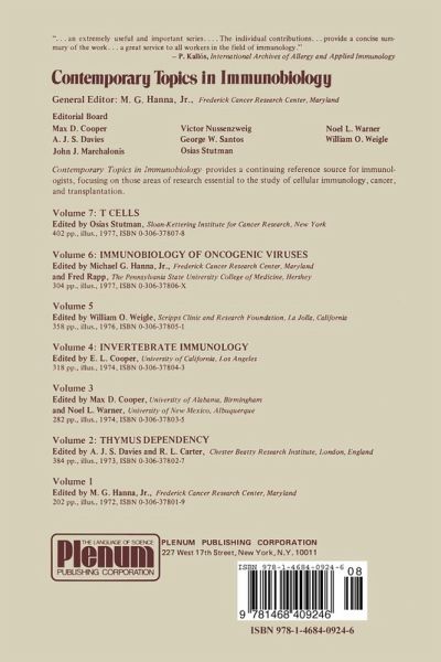 In this current volume of Contemporary Topics in Immunobiology we have chosen to continue with the multiple-theme approach that was developed in Volumes 1, 3, and 5 of this series. Immunobiology still shows little sign of decreasing its active growth rate, but rather is continuing to broaden its range of interests and applications, particularly as new techniques and methods are adapted from other fields of medical research. This present volume reflects both several of the more classical areas of immunology now addressed in the light of contemporary immunology, and several newer directions that have been taken in other fields. The general subject of T-cell heterogeneity and functions of T-cell subpop ulations is addressed in Chapters 1 and 2. The potential role of genes of the major histocompatibility complex in controlling the immune functions of T lymphocytes still remains a major unresolved issue in immunogenetics, and the current status of this problem is excellently reviewed by J. F. A. P. Miller. The further elucidation of functional subpopulations of human T lymphocytes has been particularly hampered by the lack of available markers for character izing and isolating such sUbpopulations. A major step in this direction has been made by L. Moretta, M. Ferrarini, and M. D. Cooper, who review their ex perience with Fc-receptor-bearing human T-Iymphocyte populations.