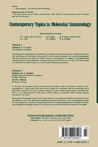The Generation of Antibody Diversity: Its Dependence on Antigenic Stimulation.- I. Introduction.- II. Explanation of the Theory.- III. Changes in the Patterns of Antibody Produced during the Course of an Immune Response.- IV. Numbers of B Cells.- V. Studies on Single Clones.- VI. Genetic Control of Antibody Production.- VII. Self-Tolerance.- VIII. Experimental Approaches.- IX. Discussion.- X. Summary.- Acknowledgments.- References.- Preparation and Properties of Lymphocyte Plasma Membrane.- I. Introduction.- II. Isolation of Plasma Membrane.- III. Properties of Plasma Membrane.- IV. Summary.- Acknowledgment.- References.- Immunogenicity In Vitro: Structural Correlation.- I. Introduction.- II. Direct Stimulation of B Cells.- III. Structure-Activity Relationships.- IV. A Special Example of Thymus-Independent Antigens - Antigen Bound to Macrophages via IgT.- V. Can Nonpolymeric Antigens Induce B-Cell Responses?.- VI. Relationship of B-Cell Differentiation to Induction.- VII. Relationship of Epitope Density to the Induction of Immunity and Tolerance.- VIII. Discussion.- IX. Abbreviations.- References.- mRNA for H and L Chains of Immunoglobulin: Specific Control of H-Chain Production.- I. Introduction.- II. L-Chain mRNA.- III. H-Chain mRNA.- IV. Nuclear Precursor of H-Chain mRNA.- V. Translational Control of H-Chain Synthesis.- VI. Specificity and Nature of H2L2 Interaction with H-Chain mRNA.- VII. Concluding Remarks.- References.- The J Chain of Polymeric Immunoglobulins.- I. Introduction.- II. Class Distribution.- III. Species Distribution.- IV. Detection of J Chain.- V. Isolation of J Chain.- VI. Physical-Chemical Properties.- VII. Chemical Composition.- VIII. Stoichiometry.- IX. Site of J-Chain Attachment.- X. The Requirement for J Chain by IgM Molecules.- XI.Cellular Origin of J Chain.- XII. The Assembly of Polymeric Immunoglobulins.- Acknowledgment.- References.- Phylogenetic Aspects of Immunoglobulin Variable Region Diversity.- I. Introduction.- II. Variable Region Subgroups.- Acknowledgments.- References.- Separation Methods for Lymphocyte Populations.- I. Introduction.- II. Preliminary Steps: Preparation of Clean Cell Suspensions.- III. Separation Based on the Physical Parameters of Cells.- IV. Adherence Separation of Lymphocytes and Phagocytes.- V. Separation Based on Specific Cell Surface Receptors and Antigens.- VI. Electronic Cell Sorting.- References.- Radioelectrocomplexing: A General Radioimmunoassay Procedure for the Detection of Primary Binding of Antigen by Antibody.- I. Introduction.- II. Materials and Methods.- III. Quantitative Studies.- IV. Applications of Radioelectrocomplexing.- V. Summary and Conclusions.- Acknowledgments.- References.