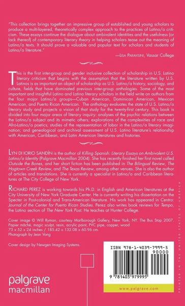 Please note this is a 'Palgrave to Order' title (PTO). Stock of this book requires shipment from an overseas supplier. It will be delivered to you within 12 weeks. This is the first compilation of essays to bring together the most important U.S. Latino/a literary criticism of the last decade. This timely text has been long in coming as U.S. Latino/a literary criticism has grown exponentially throughout U.S universities since 1995.