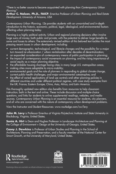 "A must-read for anyone interested in the future of their communities, towns, cities, and regions. Through their eloquent writing and accessible style, John M. Levy, Sonia A. Hirt, and Casey J. Dawkins bring us a comprehensive account of urban planning, the economic, political, social, and environmental forces that mold planning theories and practices, and how urban planning can address the grand development challenges of the 21st century."