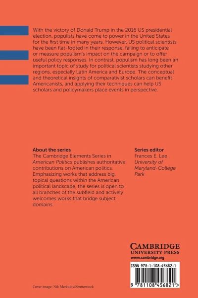 Populism has long been an important topic of study for political scientists studying other regions. With clear definitions, data, and methods for its measurement among politicians and voters, and a study of its impact on democracy around the globe, this element brings techniques to help scholars and policymakers place current events in perspective.