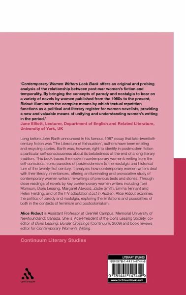 Long before John Barth announced in his famous 1967 essay that late 20th-century fiction was 'The Literature of Exhaustion,' authors have been retelling and recycling stories. Barth was, however, right to identify in postmodern fiction a particular self-consciousness about its belatedness at the end of a long literary tradition. This book traces the move in contemporary women's writing from the self-conscious, ironic parodies of postmodernism to the nostalgic and historical turn of the 21st century. It analyses how contemporary women writers deal with their literary inheritances, offering an illuminating and provocative study of contemporary women writers' re-writings of previous texts and stories. Through close readings of novels by key contemporary women writers including Toni Morrison, Doris Lessing, Margaret Atwood, Zadie Smith, Emma Tennant and Helen Fielding, and of the ITV adaptation, Lost in Austen, Alice Ridout examines the politics of parody and nostalgia, exploring the limitations and possibilities of both in the contexts of feminism and postcolonialism.